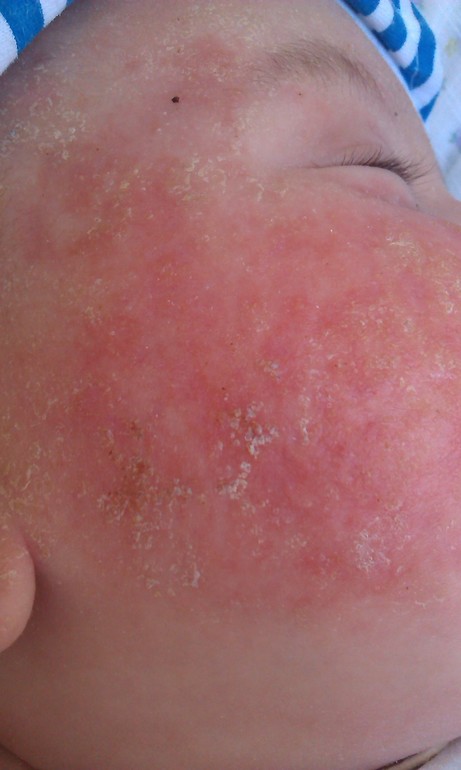 Девчонки, это уже просто жесть((( Сразу прошу извинить меня за сумбурность. Мы с сынулей уже замучились от высыпаний, они у нас с 2 месяцев начались. Буквально с нескольких прыщичков на подбородке. И пошло поехало... Тогда мы были на ГВ. Потом в 4 месяца мы с Егоркой лежали в больнице с сильным обострением АД, вторично инфецированым, щеки были в жутких корках и сквозь них мокли еще((( и ножки тоже мокли. Я там тоже заболела,горло болело и высокая температура. Пришлось пить антибиотики, я сцеживалась, но молоко все равно стало убывать и пропало совсем((((( Из больницы мы приехали чистенькие(конечно, гормоны внутримышечно и наружно). Дома начали лечить золот.стафф. бактериофагом по назначению врача. Но недолго музыка играла, так сказать. Через пару дней опять щечки загорелись и потом потекли(((( на тот момент ели фрисолак ГА. Потом Ненни. Потом Фрисо пеп АС. Никаких изменений. Потом попали на прием к педиатру хорошему в Москву и она назначила лечение наружное и сказала, что у нас аллергия на белок коровьего молока. Пролечились наружно. Едим Фрисо пеп АС. Теперь мы выглядим так