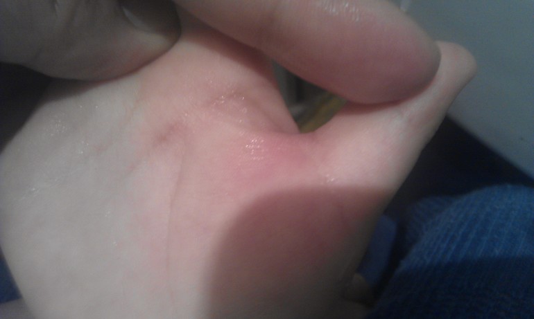 Кожные проявления АЗПоиграл мой сынок с цветком хризантемы, пока я их подрезала. Между пальцев - как ожог волдырь, окружен кучей мелких пузырьков.