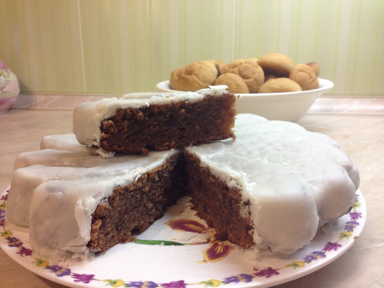 Сверху все укатала типа мастикой из сахарной пудры и 5 ч.л. воды, 1ч.л. агар-агара, 0,5ч.л. масла растительного... но тут я еще планирую поработать над составом идеальной мастики-заливки. Но для разнообразия пойдет, а то близится 3-тье день рождение )))