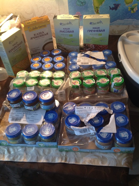 Отдам к этому всему даром Бабушкино Лукошко Кабачек+Яблоко, цв.капуста и брокколи по 3 баночки, а также открытые в течение 5-10 дней каши Флер Альпин Рисовая, Гречневая, Кукурузная и Беби Ситтер Ячменная. Тоже, к сожалению, обсыпало.