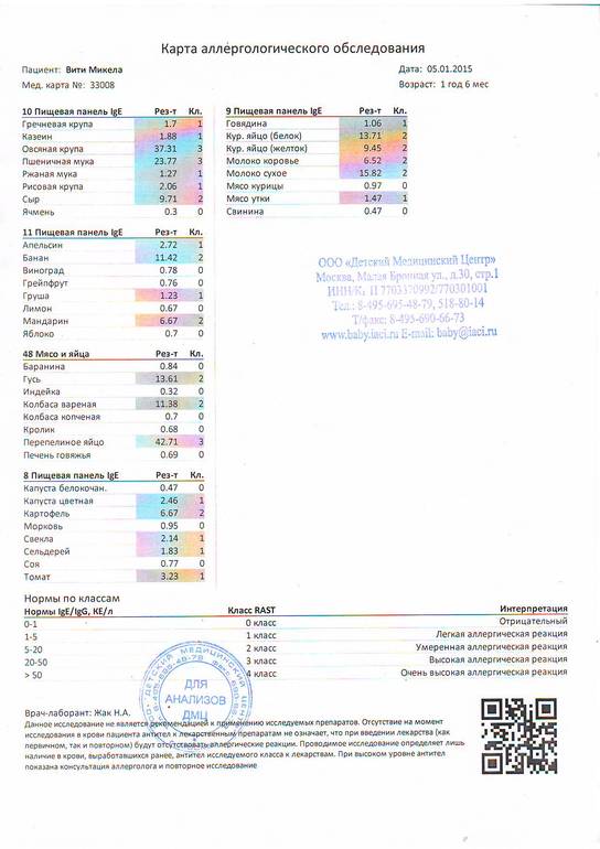 У нас похожий результат был в 11 месяцев, есть то, что можно. Яблоки и груши только пюре, баранина, индейка, кролик, морковь в супе в вареном в виде, капуста белокачан в вареном виде, можно попробовать кольраби, репу. Крупы можно пробовать ячку (но она очень тяжелая для переваривания). Нам разрешили раз в неделю есть продукты с единичкой. А вы где сдавали анализы? Какие панели? P.S Зачем в панели колбаса копченая и вареная?
