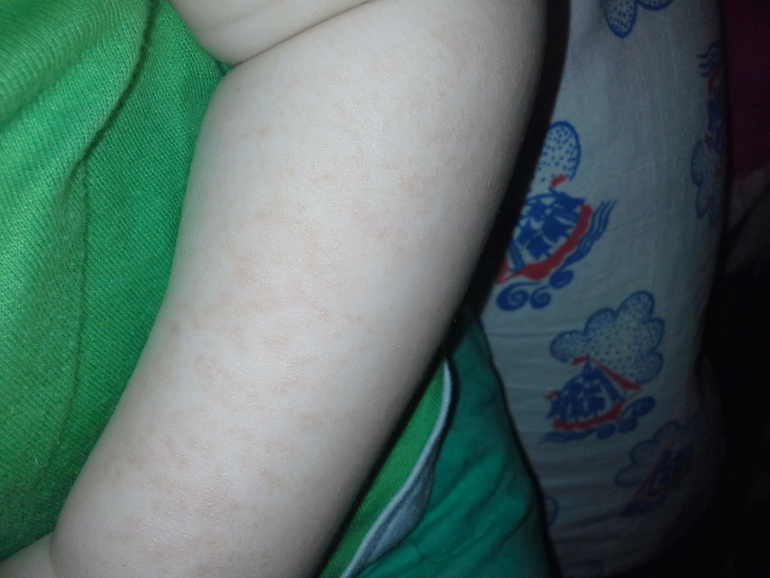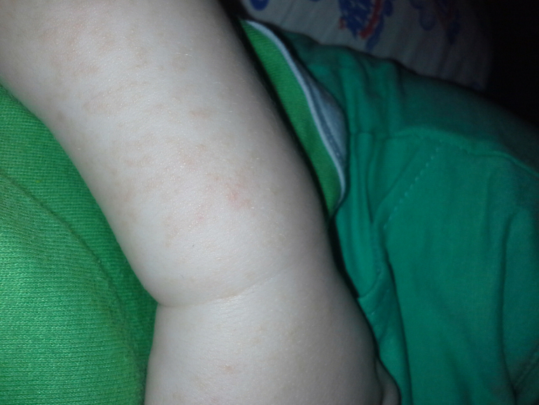 Высыпания на ручках и немного на плечах! Не мокнут, не чешутся. немного на носу прыщики. Попа и ноги идеальные, ттт! Так вот, я думала контактная аллергия, т.к в основном на открытых участках кожи сыпет, поменяла все порошки и моющие средства! Результата нет. Держим диету. Кушаем кролика, картошку, брокколи, стручковую фасоль, кукурузную и гречневую каши. На остальное мне кажется сыпет, кажется, т.к я до сих пор не могу выявить аллерген. Мы на гв. Диету соблюдаю. Вот наша сыпь