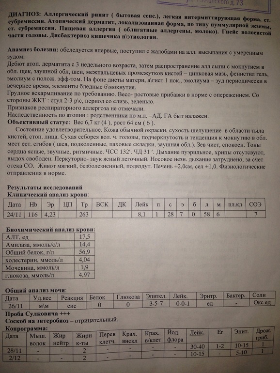 Опыт визитов к врачуВсем привет. Помогите, пожалуйста, расшифровать результаты. Были на обследовании в бесплатном отделении и попалась очень не разговорчивая врач, которая ничего толком не объяснила, дала выписку и сказала, что там все написано:( а у меня вообще появились сейчас сомнения- аллергики мы или нет?