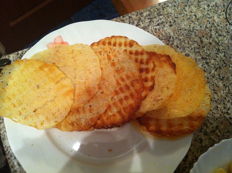 Состав: козий йогурт, отварной картофель, мука, масло растит, Вафельница, соль по вкусу.