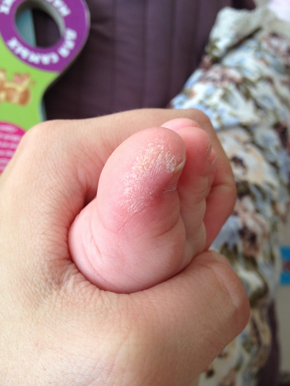 И такое тоже может быть. У меня у самой , от нехватки вит А на стопах кожа бывает вот так волдырями. Но в основном подушечки у пальцев. Такого, что именно на одном пальчике не бывает.