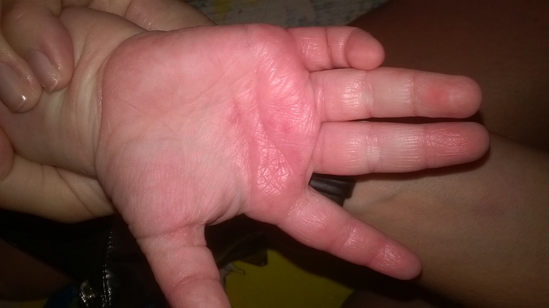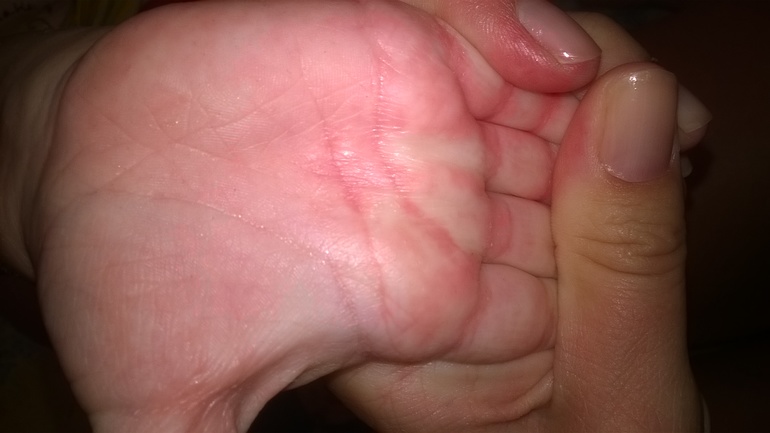 Питание ребенка с аллергиейРебенок на диете уже неделю. Нам 1,6 г. Что мы едим. Гречневая каша(коробочная хайнц), кабачок/цветн.капуста/индейка,морковь/яблоко/рис. Вроде вычислила что сыпет на картошку,убрала.И точно аллергия на молочку. Теперь нет пятен по телу. по продолжает держаться красные полосочки под коленкой. Под второй чисто.Значит аллерген еще поступает**???? И периодически краснеют пальчики, и на ладонях вроде как маленькие прыщики, они мне кажется дают красноту в процессе.Один из аллерголог предположил,что это уже инфекция на руках. И прописал тридер гормонка+антибиотик. Мазать этим не хочу. Есть какие нибудь мази антибактр.но без гормона? Или это все аллергия и аллерг продолжает поступать?. Как считаете, можно попробовать что-то из глютена. Хочу ввести кашу овсяную и макароны. Кашу в первую очередь,чтобы убрать коробочные. Своего приготовления гречу не ест,плюет. Бананы хорошо б убрать, но я просто не знаю чем кормить,ребенок ходит полуголодный,все время просит есть. Банан очень выручает. Как еще можно расширить рацион.Фото ручик ниже, правда мало чего передают из-за качества.