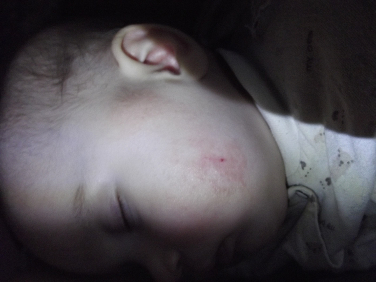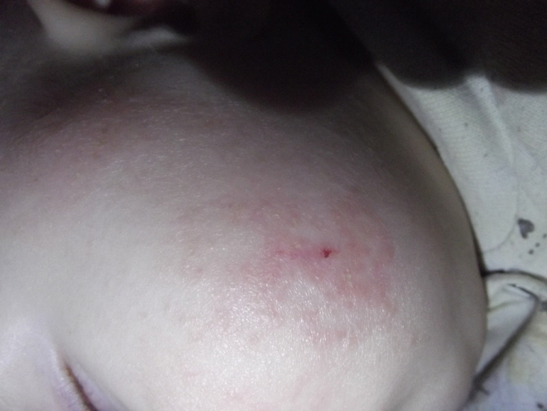 а днем была уже бледная(наверное аллерген поступает дальше....и думаю..может уже кроме аллергии еще что-то( ИЛИ..или...просто кожа не успела понять что происходит...и так заживает медленно...