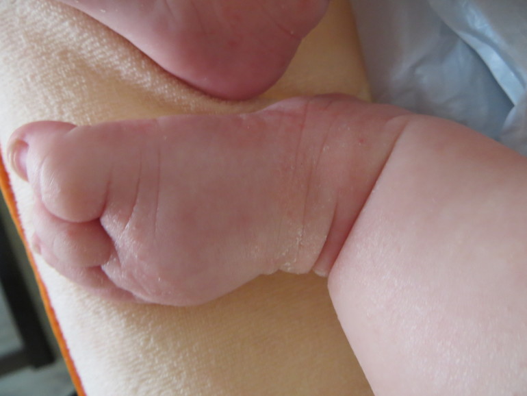 На ногах пятна шелушатся и очень беспокоят вот эти места (постоянно их расчесывает)