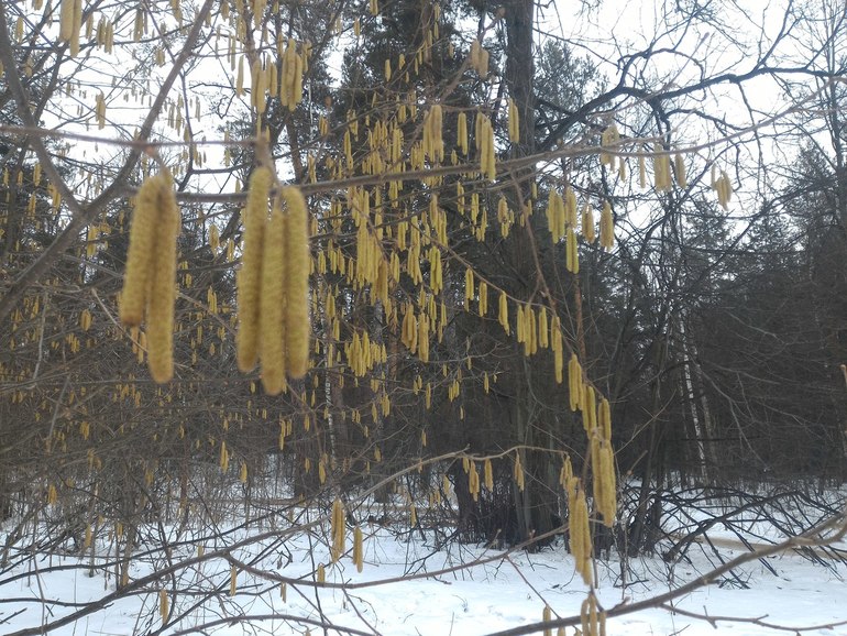Ольха и орешник цветёт и в мороз, и во время снега.