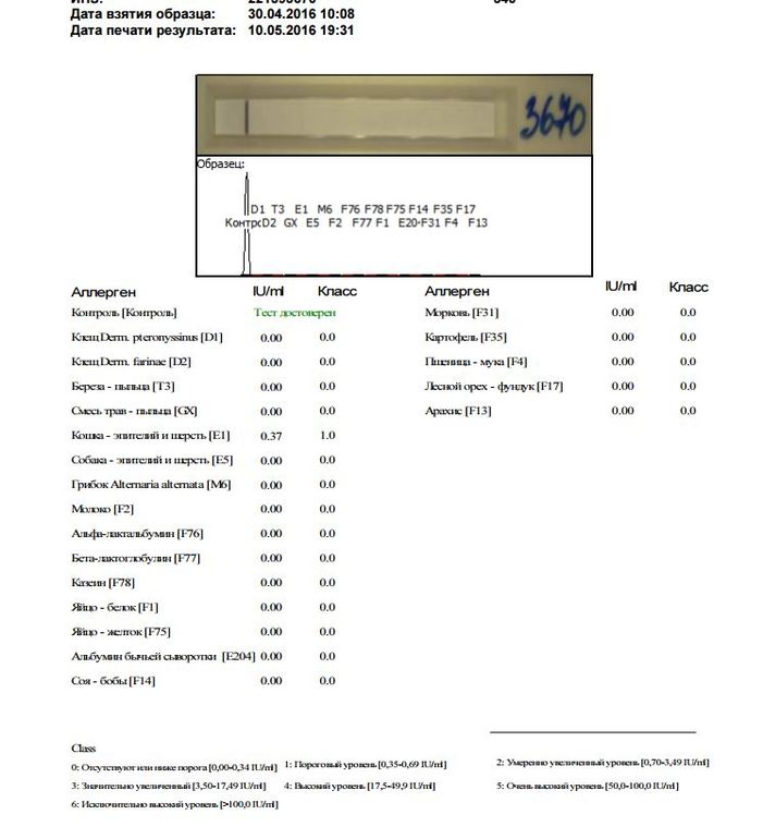Съездили в Морозовскую к Назаровой. Рекомендовано полностью убрать молочку, нэнни заменить на аминокислотную Неокейт эдванс. Сдать аллергопанель педиатрическую, придерживаться диеты г/а. После этих рекомендаций Илья снова стал чище, однако зачастую после прогулки на улице стал приходить расцветший. Вчера пришел результат аллергопанели и я очень удивилась. На все результат 0.0, кроме кошки. К слову, кошки дома нет, никогда не было (заезжали в квартиру после ремонта (новострой))