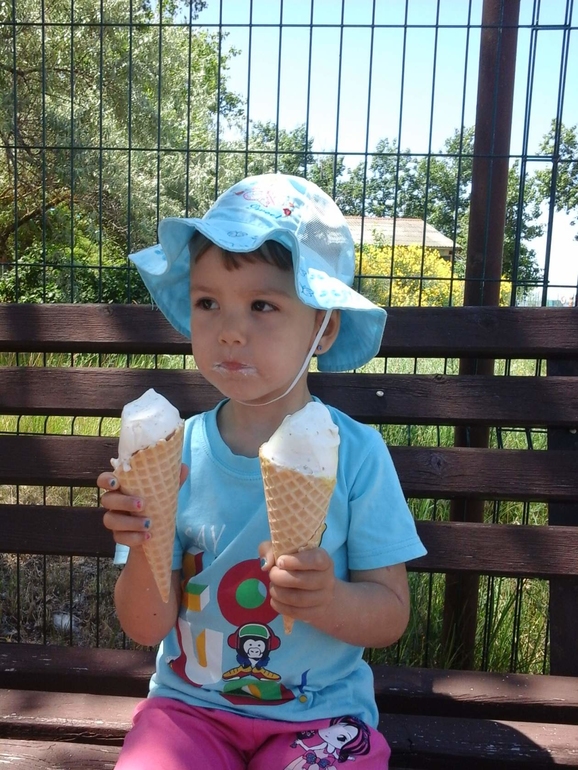 Отдых с ребенком аллергиком (санаторно-курортное лечение)Вот мы и дома! 20 дней пролетели как один! Гостевой дом хороший, хозяйка приветливая, деток полно проживало, погода супер, море, песок.......-это вкратце. Основное пишу о нашем состояние. Первый день пробовали малину, к вечеру был жидкий стул, на утро все ручки в красных пятнах, списала все на ягоды-поторопилась.Следующий и остальные дни все наладилось. Кушали: завтрак сама готовила (яйцо, каши на воде, блинчики на воде, хлеб с МАСЛОМ СЛИВОЧНЫМ)-сама в шоке! Обед: кушали в столовой (проверенной временим всеми жильцами), первое, второе, компот и салатик. Ужен: готовила сама(пюре картофельное, тефтельки , МАКАРОНЫ, гречка, рис, салатик)-то же в шоке. Ребенок мой довольный и счастливый уплеттал все за милую душу. В перекусах у нас были кук.палочки, сихие печени, соломка сухая, пастила и да же орехи-фундук. Ягоды: малина, черешня, вишня, клубника-ели каждый день. Так что жидкий стул был все же связан с акклиматизацией. За эти дни не один прыщик не выскочил!!! Чесалась иногда только от укусов комаров. Слабина в питание у нас была в полном комплекте. На море ходили 2 раза в день. Иногда брали сладкую вату на палочки, кукурузу и да же МОРОЖЕНОЕ!!! Загорели,похорошели. Дочка-шоколадка! Мазала ее кремом 50, так постепенно все же лег загарчик,ручки только не ровно загорели, с белыми кружками от тех всех расчесах и красных пятен, почему то эти места не загорают(на фото с мороженным видны на ручках белые пятна). Были пару неприятных моментов когда лежали на пляже, именно в тот первый день когда краснота сидела на руках и тетя вступила с нами в диалог: "Вы знаете, у вашего ребенка Лямблии?" Нет, сказала я. Не хотелось да же говорить и продолжать дальше, а она нет,настаивала дальше...."Вам да же ни какой анализ их не покажет, хоть сто раз сдавайти и кровь и кал"....я делала вид, что не обращаю внимание на ее разговор, а она вот пристала........."Лечите ребенка, а иначе вы получите псориаз..." ага, думаю я, 4 года я значит хожу по разным докторам, мучаю ребенка анализами и лечениями, а тут все бесплатно, глянула-поставила диагноз) где же вы раньше были, подумала я) Это была мелкая неприятность, основной отпуск у нас удался на славу! И напоследок фоточки!
