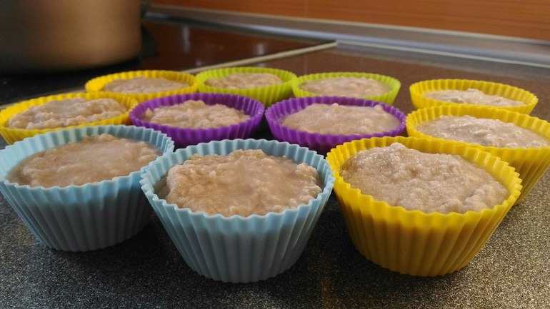 Раскладываю порционно по формочкам. У меня получилось в одной такой формочке 60 гр., т.е. как раз на 1 день.