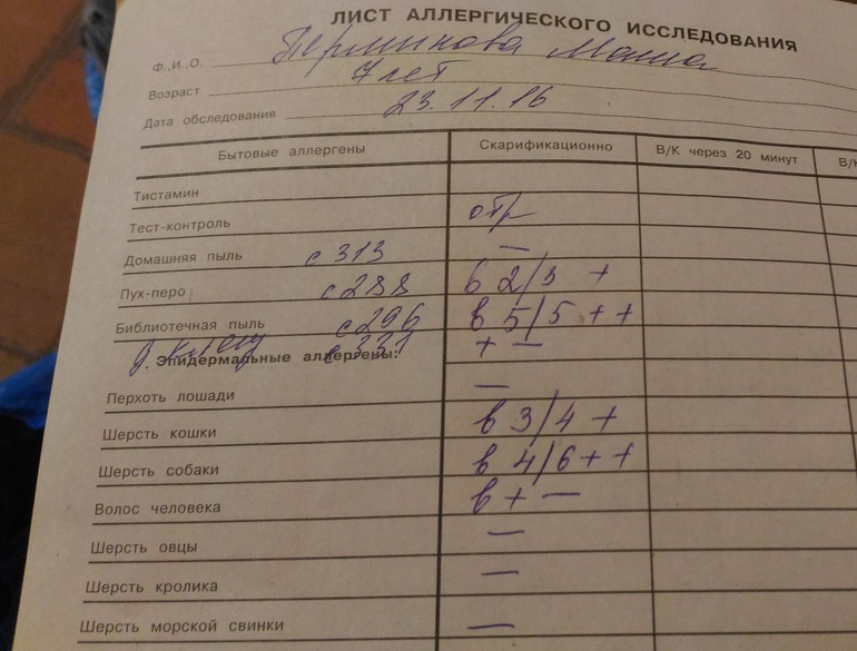днем делали пробы. результаты были по 1-2 плюса. сильно больших волдырей не было, на данный момент уже чистенько на руке.