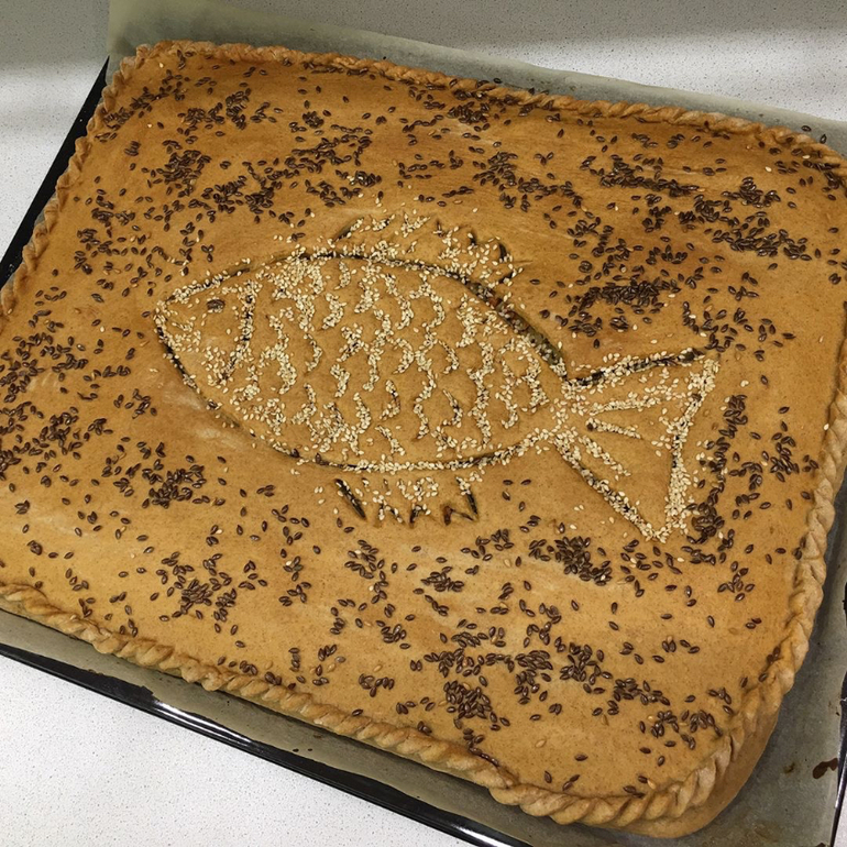 А тут без яйца и молока рыбный пирог из ржаного теста
