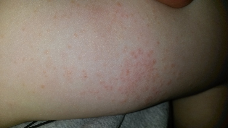 а эта сыпь беспокоит ребенка? Обследование проходили? С продуктами есть связь? Может аллергенное что давали? У нас тоже атопический дерматит начался после антибиотиков. уже год не проходит. Сдайте кал на дисбактериоз и копрологию. Еще эозинофилы крови посмотреть надо и общий иммуноглобулин Е с результатами я бы посетила аллерголога и гастроэнтеролога.