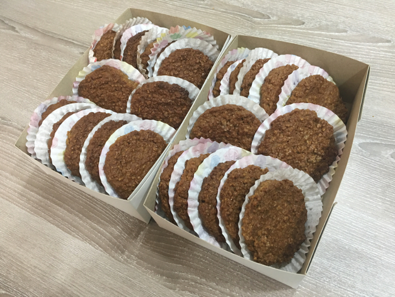 А это были песочные пшенично-кукурузные безмолочные и безяичные печенье, и овсяное печенье. Рецепты есть в кулинарной книге.