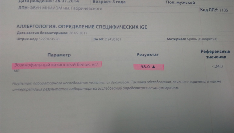Нам сказал врач, повышенный катионновый белок означает, что мы попадаем в группу риска бронхиальной астмы.