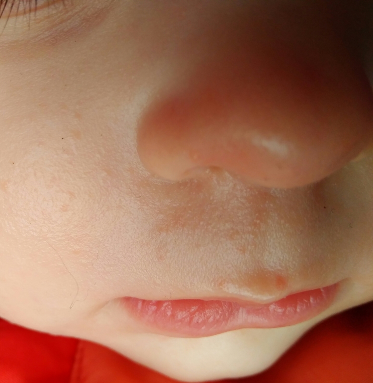 Кожные проявления АЗДевочки, привет. 1.5 месяца назад вылез атопический дерматит на ручках, спинке и груди. Высыпания прошли, я на диете.Тут ввела грушу в свой рацион (мы на ГВ) в качестве компота. Появились прыщички на лице, больше под нижней губой,но они то проходили то появлялись, я думала от слюней раздражение. Далее начала пить кальцемин, мне он не пошел, желудок заболел, бросила. Сейчас сыпи стало больше, теперь под носом еще. Как думаете это АД вернулся, теперь на лице?Фото под кат