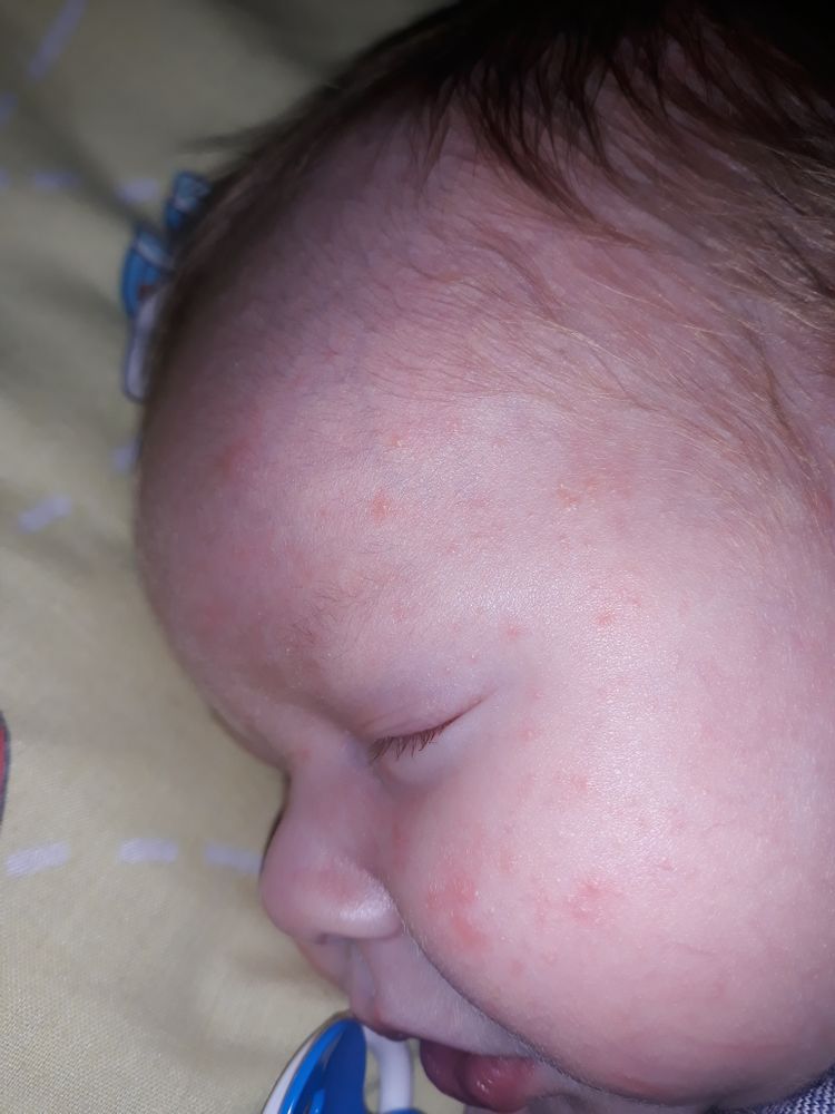 Прошу советаЗдравствуйте, подскажите пожалуйста на что похожа сыпь, аллергия или цветение? Малышу 1 месяц.