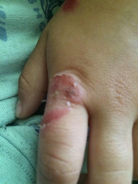Ходили к дерматологу он нам поставил пищевую аллергию,но я сомневаюсь в этом.Завтра пойдем к другому врачу и будем сдавать кровь.Ребенок был у свекрови и у него появилось пятно как от ожега,она испугалась что не доглядела и мне не позвонила и не чего не сказала.Когда приехала сказала что не знает от куда это у него появилось,на носике была маленькая царапинка он при мне содрал корочку и на следующий день образовалась новая корочка но не с ровными краями,толстая и рефленая,а вчера ему моя мама дала конфету днем и через пару часов у него появились на пальце два странных пятна,мы пошли к дерматологу и он назначил лечение от пищевой аллергии.Посмотри по фото у кого нибудь были что то похожее?