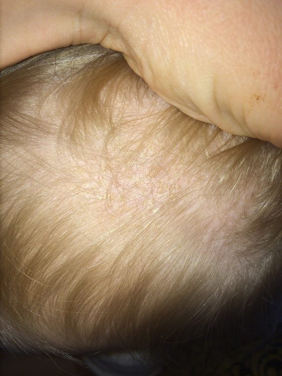 Девочки, подскажите, что это может быть? У дочки 2,2г под волосиками два симметричных шелушащихся пятна сантиметра 2-3 в диаметре... Очень похожих по виду на детские корочки... Это аллергия, или что-то другое? Они уже давно и не пропадают, пыталась их отшелушить-без толку:( под катом фото