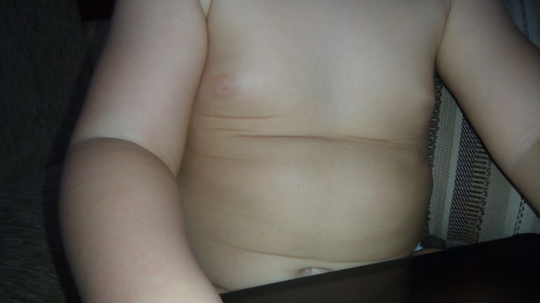 сейчас только у локтей шершавости и у соска немного сыпи, животик почти чистый, больше не краснеет