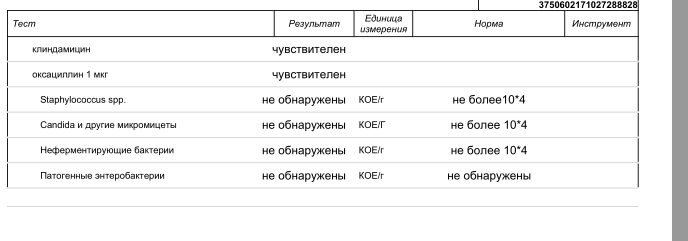 10*5-10*8 КОЕ/Г 2х10*5 Энтерококки (E.faecalis)