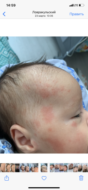 Где щека максимально красная , это сегодня ! Краснота со временем уходит в течени дня ,остаётся сыпь ! Раньше у нас был лоб чистый ! Сейчас и лоб в теме !