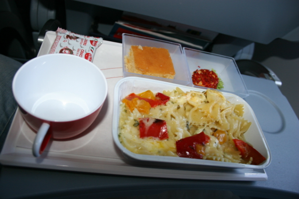 Кормили 2 раза, плюс на протяжении всего рейса (и по требованию) предлагали прохладительные напитки и алкоголь (бесплатно). На борту 8 стюардес, все очень внимательные и доброжелательные. Для меня полет прошел легко и достаточно быстро.