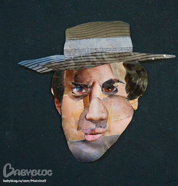 Мини-портрет из журнальных нарезок. 8-10 см. 15 Долларов+пересылка.