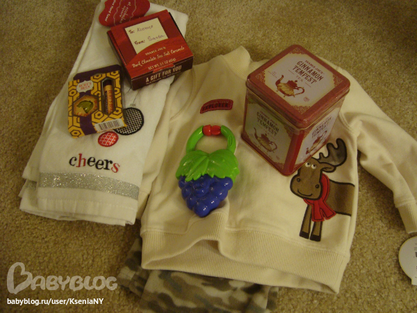 Традиции/Праздники/РазвлеченияНашим сантой была @Nata_bedford с доченькой Сашенькой. Получили красиввые коробочки, которые точно упакованы с душой.Даже не очень сентиментальный муж растрогался)Спасибо вам огромное за такие великолепные подарки!!! Все такое красивое и вкусное!) Мы очень рады. Костюмчик мягкий и тепленький, а тизер привел яна в восторг. у него как раз режутся зубы.Но а подарки для меня просто чудесны....ароматный чай+конфеты, помада на холода и праздничные полотенца. Спасибо!!!!!!!!!!!!!!!!!!