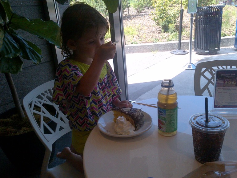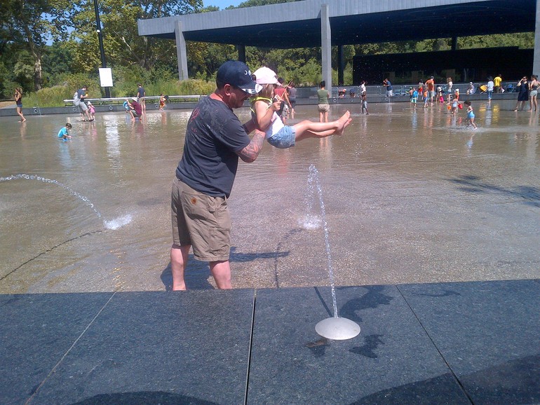 солнечна девочка! прическа модная у вас! и папа молодец как всегда — гуляете по красивым местам! фонтан понравился,где побродить можно! и оранжевый цвет вам идет -классный купальник!