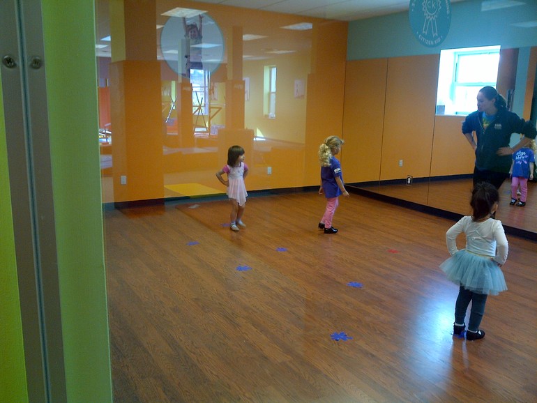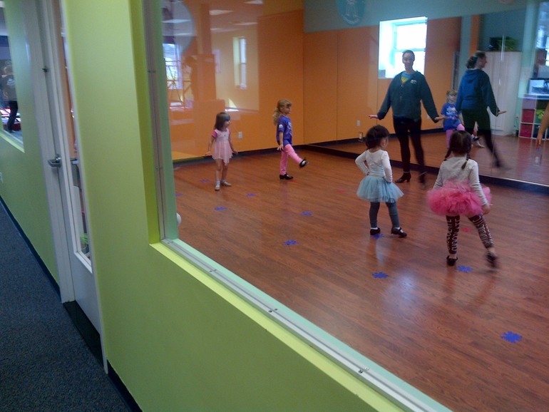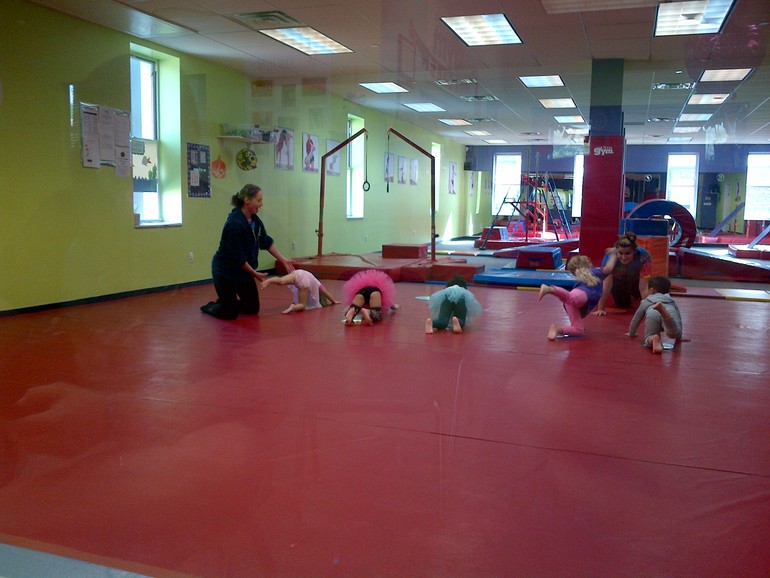 Да. Мы раньше туда на гимнастику ходили, но Анюта была маленькая и только баловалась. Сейчас она уже барышня, старается, все за педагогом повторяет.