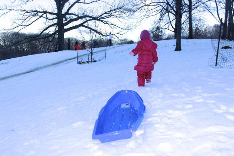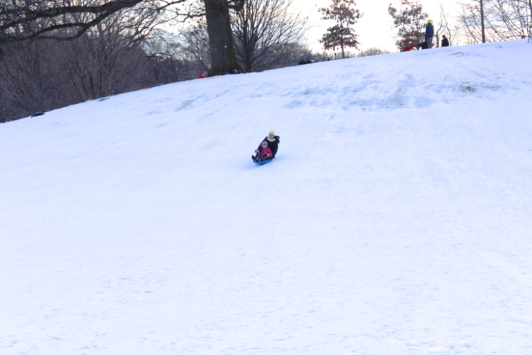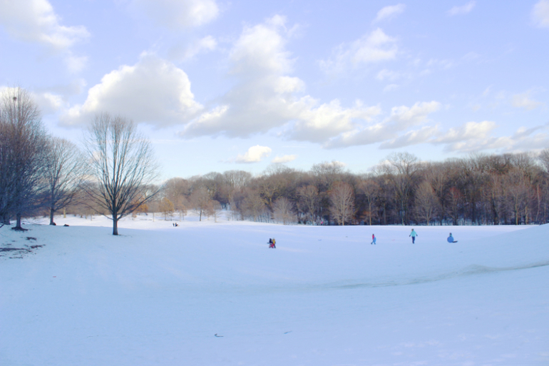 Традиции/Праздники/РазвлеченияСнег в Нью-Йорке ещё держится. Возможно, в понедельник снова нападат. Пока он лежит, очень рекоммендую взять своих детишек и направиться с ними в парки города кататься на ледянках или санках. Ведь снег совсем скоро растает. Есть снежные склоны в Центральном парке и парках Бруклина. Вот горки в Бруклине.