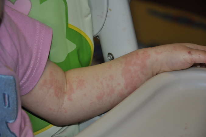 И тут неделю назад ребенка обсыпало! Да так, что мама не горюй!! Причем исключительно левую сторону!! Лицо и попа - чистые!