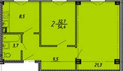 1) Перенос кухни в гостиную. Таким образом, получается большая кухня-гостиная + 2 отдельных комнаты: спальня и детская. Этот вариант мне нравится больше всего, он для меня идеален, но он самый сложный, ведь нужно и разрешение получить, и много денег потратить на перенос.