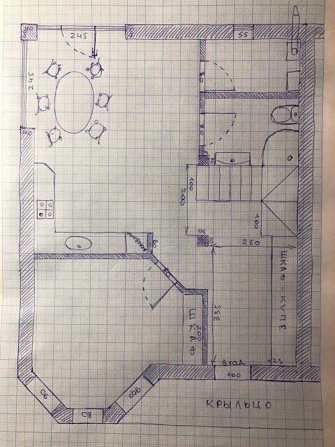 Думаю можно ли совместить туалет и котельную? Где лучше сделать кухню : в эркере или у туалета? А может туалет лучше будет смотреться напротив лестницы, разделяя кузню и гостиную. Стоит ли кухню отделять или оставить одно большое помещение?