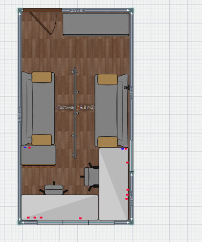 Задача: разместить двух школьников, с комфортным рабочий местом и двумя кроватями, а так же зрительно уменьшить комнату, вернее сделать менее вытянутой.