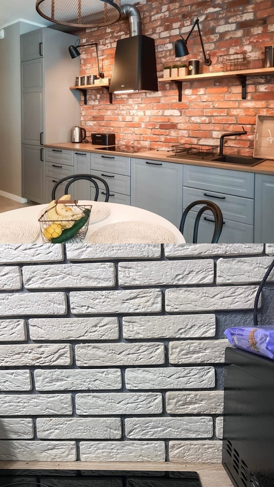 Девочки сделала фартук из кирпичей из гипса белый но не красила до конца ,теперь хочу в коричневый цвета кирпича может можно как то сделать дайте советы покрасить коллером или чем то чтоб было как на фото буду тоже делать во всю стену