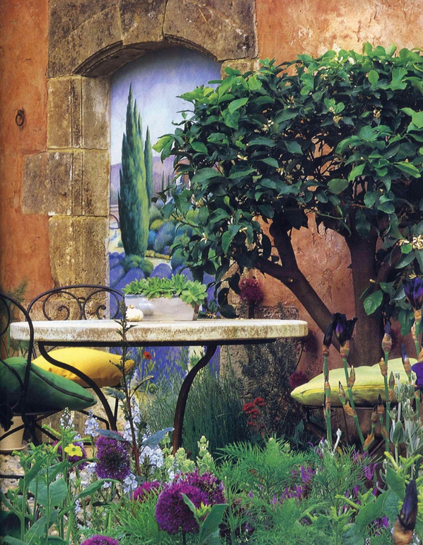 Сад Прованса очень зеленый, построенный на акцентах света и тени, и пробивающихся сквозь листву ярких и сочных бутонах цветов. По сути, сад, это продолжение дома. Его самая большая и яркая комната, встречающая гостей и провожающая их после посещения имения.