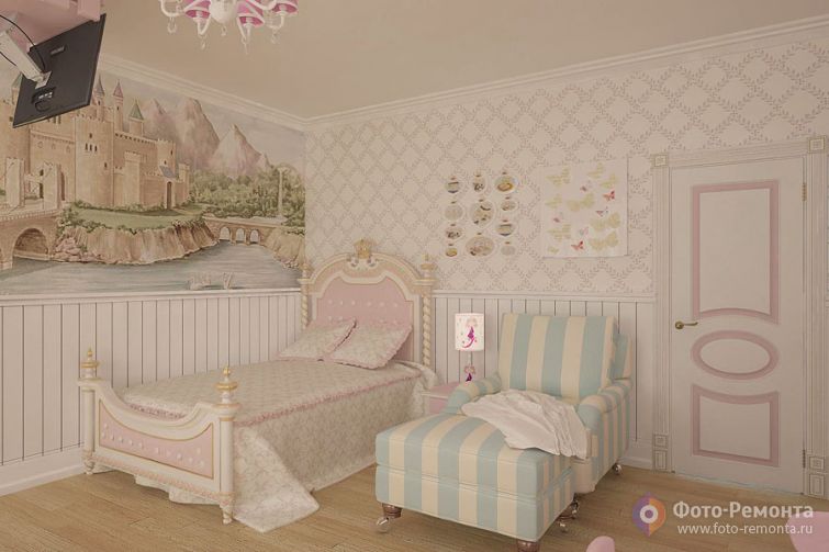 Детская для двух маленьких принцесс, требующая профессиональной росписи стен у кроваток, точнее над ними. Размер рисунков примерно 2х1,5. Нежные цвета, без резких переходов, качественные краски и лаки. Не срочно, идет капитальный ремонт.