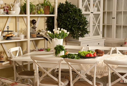 Однако чтобы произвести такой эффект, одной лишь игры цвета недостаточно - ведь «изюминка» любого интерьера заключается, прежде всего, в его элементах. В интерьере в стиле прованс главным элементом является, конечно, мебель. Тонкая резьба, искусно подобранные декоративные элементы, фурнитура, материалы отделки - все это превращает мебель в стиле прованс в произведения искусства, каждое из которых уникально и неповторимо.