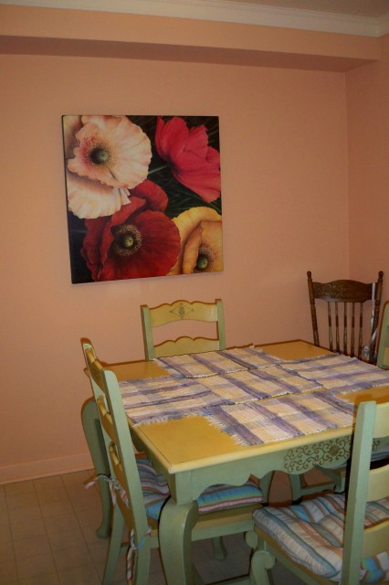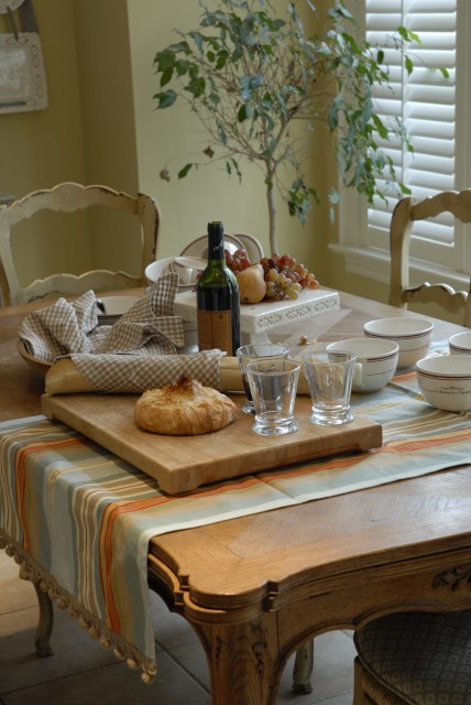 Столы. Прованс не ограничивает форму : прямоугольные, овальные, круглые - все эти формы можно смело использовать в прованской столовой, не боясь испортить общую стилизацию. К чему стиль прованс более требователен, так это ко внешнему виду стола. Он обязательно должен иметь деревянную столешницу, ножки могут быть деревянными или коваными. Поверхность стола состаренная, с потертостями. Общее впечатление должно быть таким, как будто этот стол служил верой и правдной не только вам, но и вашим родителям.