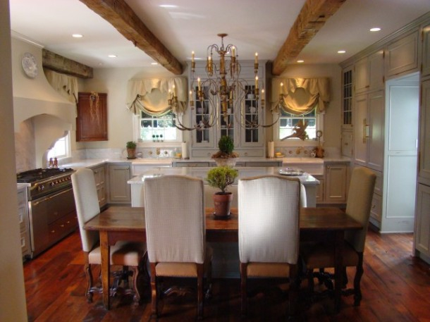 Люстры. В прованской столовой играет важную, можно даже сказать, центральную роль. Чаще всего используются массивные люстры с абожуром и люстры-свечи.