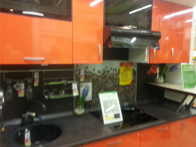 Но соответственно другое расположение шкафчиков и низ весь оранжевый.