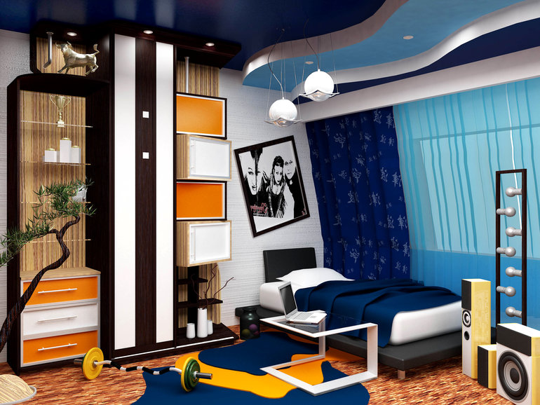 Однако, по мнению ученых не стоит красить все стены в синий цвет, чтобы не создавать у ребенка ощущения замкнутого пространства. Лучше всего комбинировать его с другими цветами или вообще оставить только на крупных рисунках.