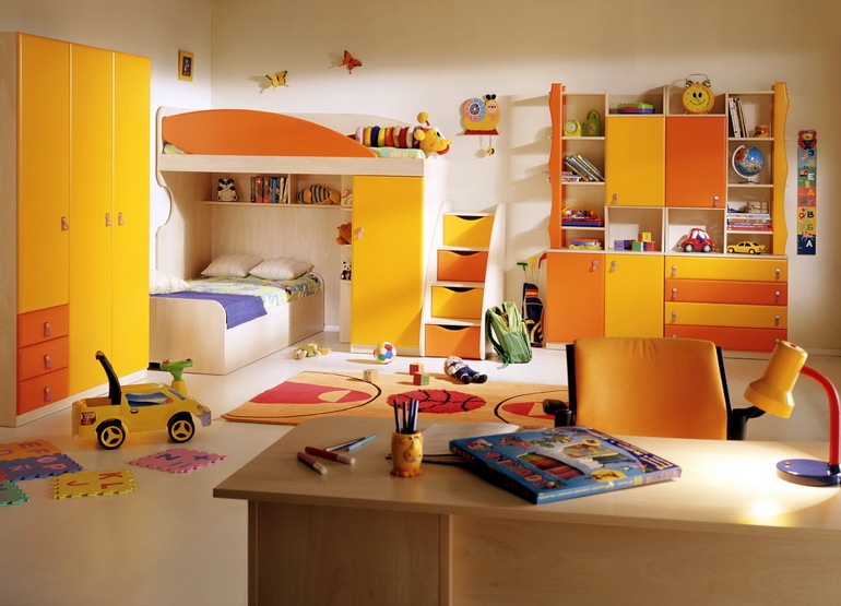 Использование оранжевого, как и красного цвета лучше свести к минимуму: пара игрушек, картинки на книжки. Оба цвета являются агрессивными и могут оказывать негативное влияние на неокрепшую психику и нервное здоровье малыша: вызывать головные боли, головокружение, переутомление.
