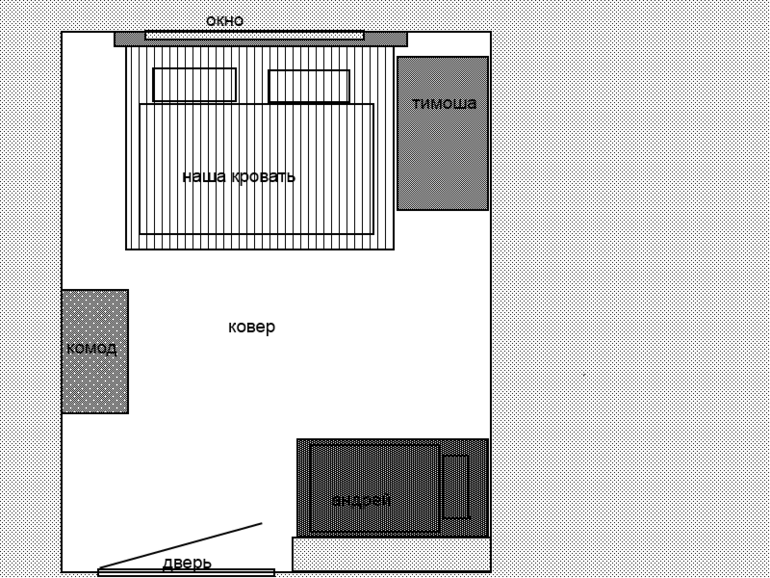 Здравствуйте! Мне оба варианта не нравятся — люди спят ногами к двери(((...я за отселение старшего в другую комнату. тогда можно выбрать первый вариант, но без кровати для Андрея....