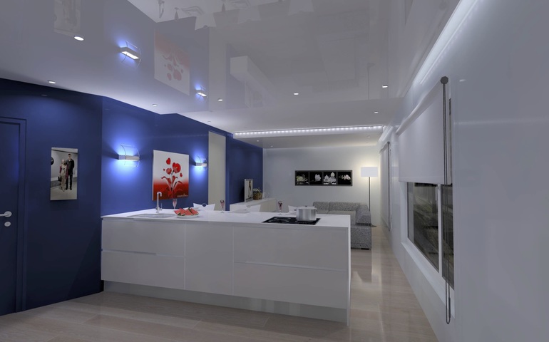 Не могу определиться с цветовым решением для кухни(она же часть зала)Ламинат будет светлым,потолок по рисунку другим,а база как на проекте).Хочется холодный не кричащий цвет..Думаю еще часть потолка покрасить над кухней..Очень жду ваших предложений)