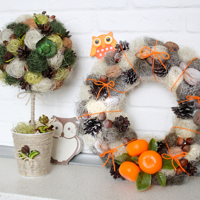 Предлагаю услугиУютный топиарий "Дары леса" с настоящими шишками, орешками, сухоцветами и сизалевым волокном в наличии! Цена 1300р, Москва, будет хорошим подарком себе или близким на Новый год и Рождество!